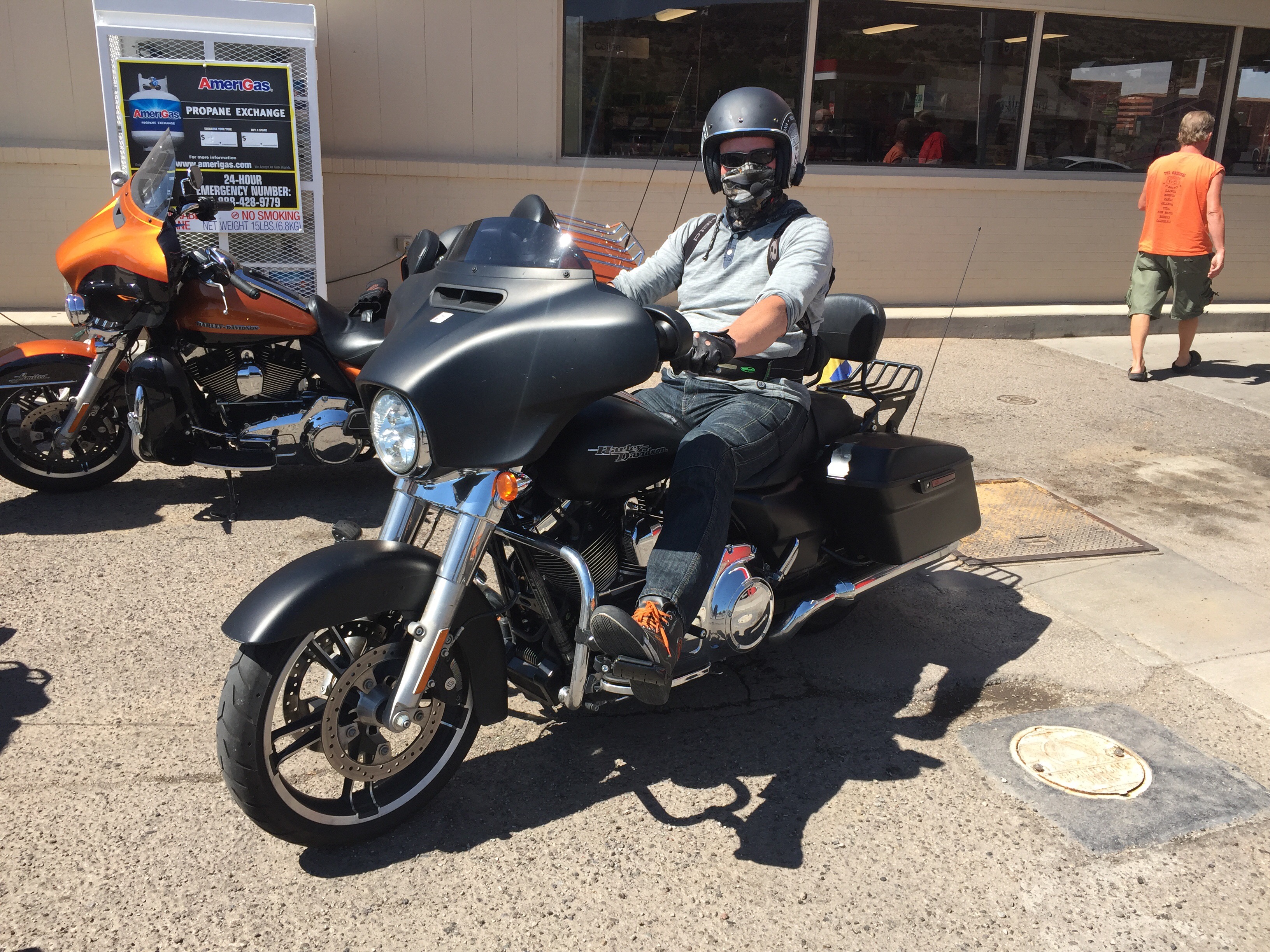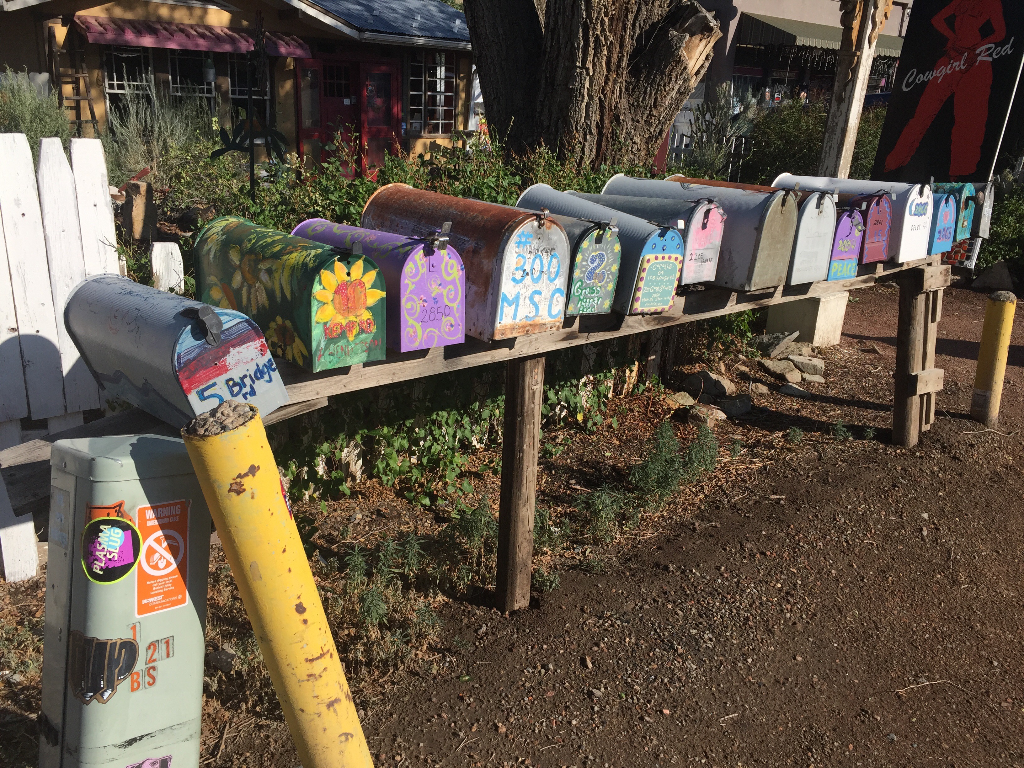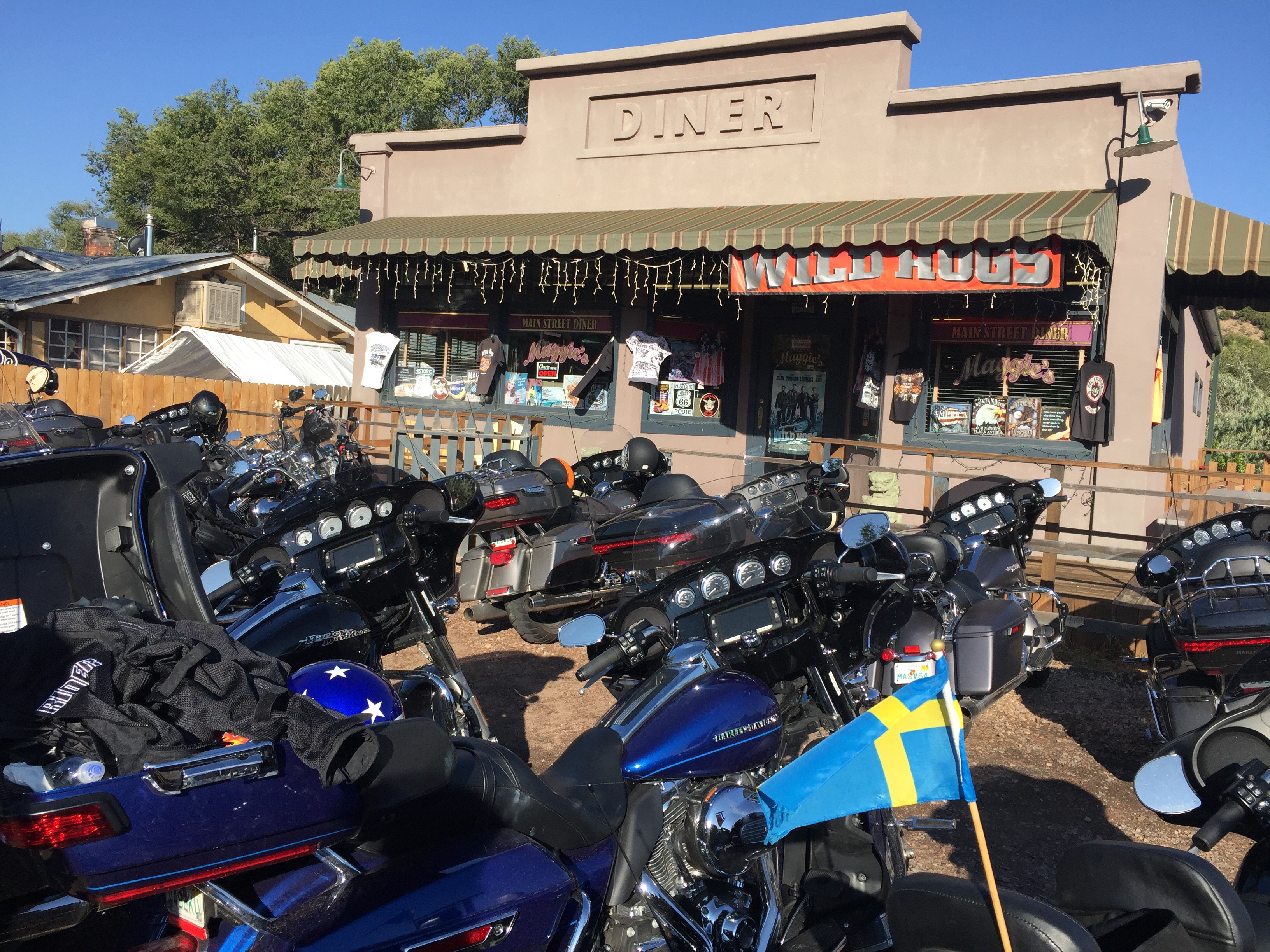 Idag har vi besökt den coolaste byn jag sett! Det var en liten by i bergen norr om Albuquerque med hus lĂ€ngs bĂ„da sidorna av vĂ€gen ca 1km. Madrid Ă€r en liten hippieby som Ă€r kĂ€nd frĂ„n komedifilmen Wild Hogs, med bl.a. Travolta, dĂ€r en stor del av handlingen utspelar sig. Filmen handlar kort om 4 medelĂ„lders men som fĂ„r för sig att börja köra hoj och kallar sig Wild Hogs. De hamnar sĂ„ smĂ„ningom i byn Madrid, dĂ€r de trĂ€ffar den lokala MC klubben Del Fuegos. Denna lilla by ligger inte lĂ€ngs route 66, utan var en avstickare pĂ„ helt fantastiska smĂ„, kurviga vĂ€gar đ.