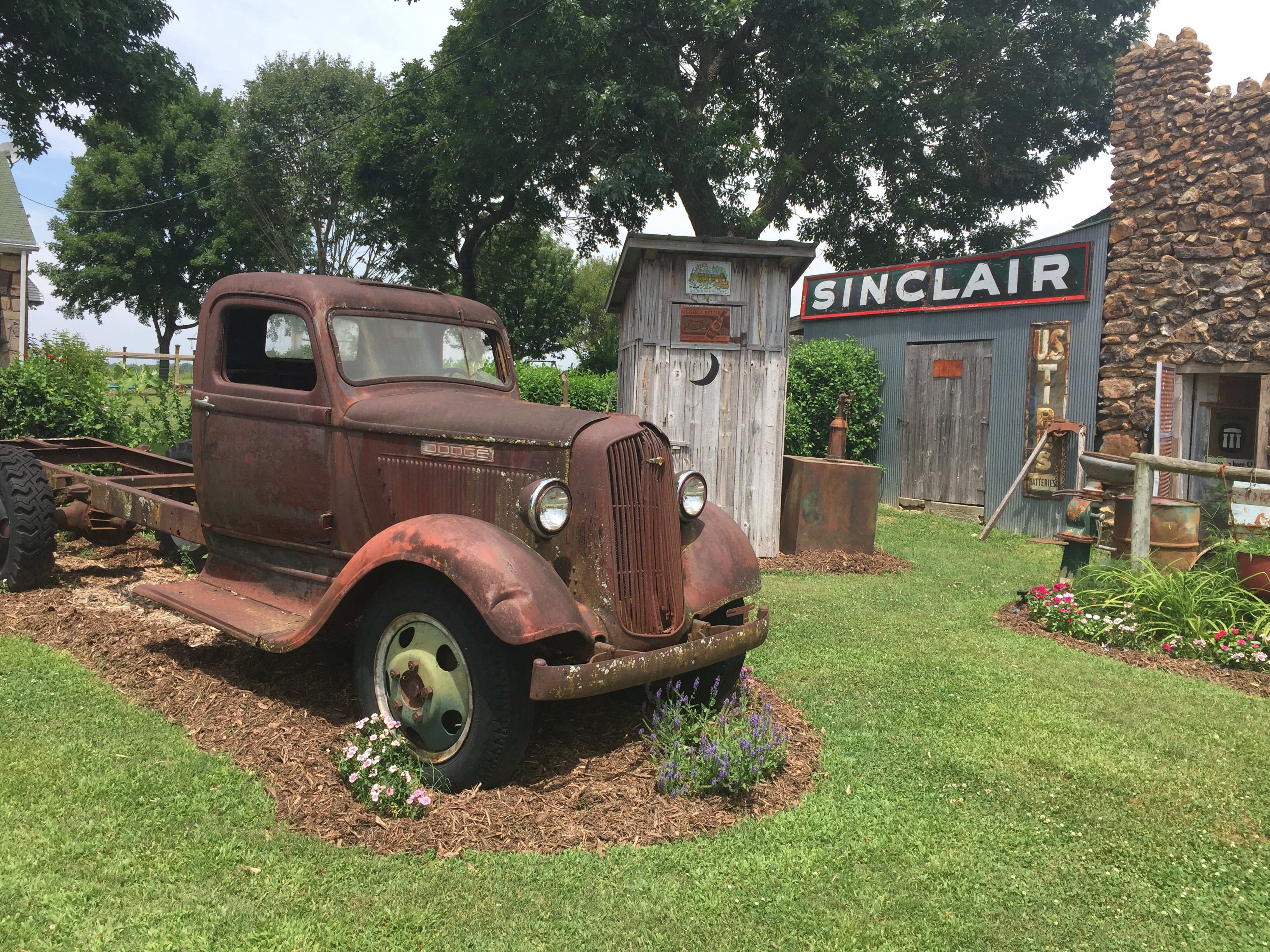 Påväg mot Springfield, stannade vi till vid en gammalbensinstation (museum) och åt glass 🍦. Det var en annorlunda trädgårdsdekoration de hade 😂.