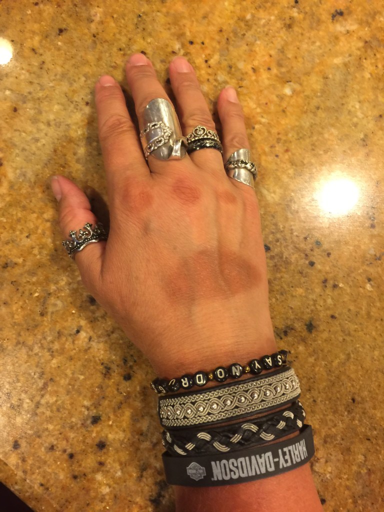 Idag kände jag mig härligt utvilad när jag vaknade, men kroppen är bra sliten nu. Körningen idag var tung, det var som om kroppen ställt in sig på att körningen var över och någon hade nog hällt bly i mina skor 😩. Jag har ju styrketränat och kört massor av hoj för att förbereda mig och det var nog tur det. Min axel satte mycket träning på spel, den 23:e april kastade min tidigare skadade axel in och gick ur led när jag sov (läs gärna om det i blogginlägget ”gilla läget”) och jag kunde i princip bara promenera och köra hoj som träning 🤥. Men axeln har inte varit min största krämpa på denna road trip, nej det har varit händer och underarmar! Mina händer har lika mycket valkar som en byggarbetare 😂😜.