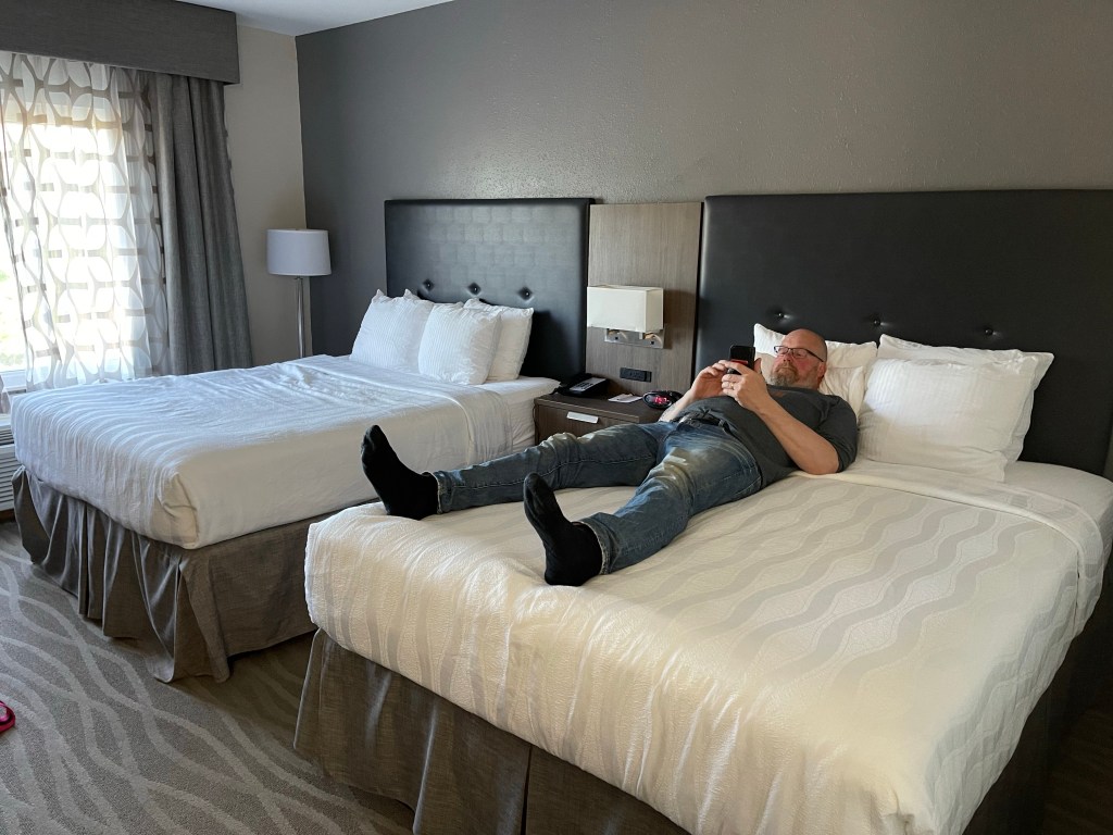 Att somna igĂ„r var inga problem, efter att ha varit vaken i tvĂ„ dygn đŽ. Fick vĂ€l ett par timmar sömn pĂ„ flyget, men vi var riktigt trötta nĂ€r vi landade i varsin Queen size bed klockan 18:30. Ăven storleken pĂ„ sĂ€ngarna Ă€r imponerande, skulle nĂ€stan fĂ„ plats en hel familj i min đđđ».